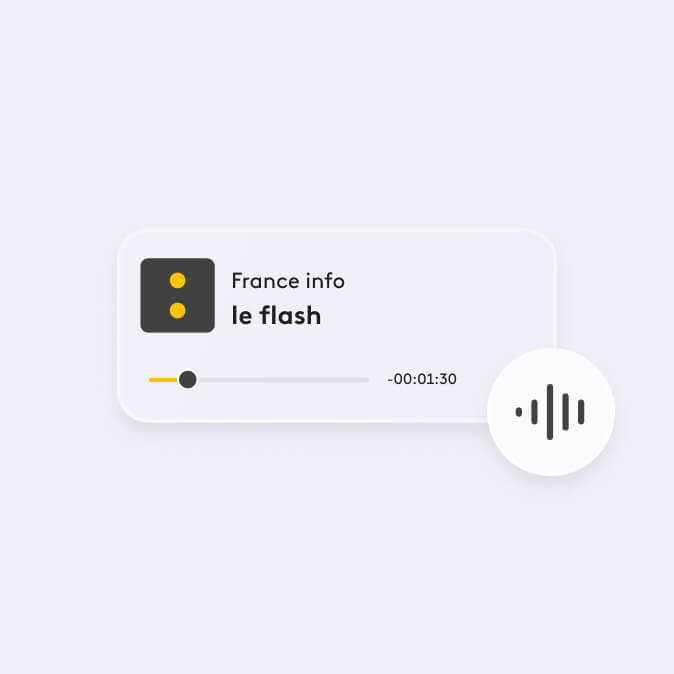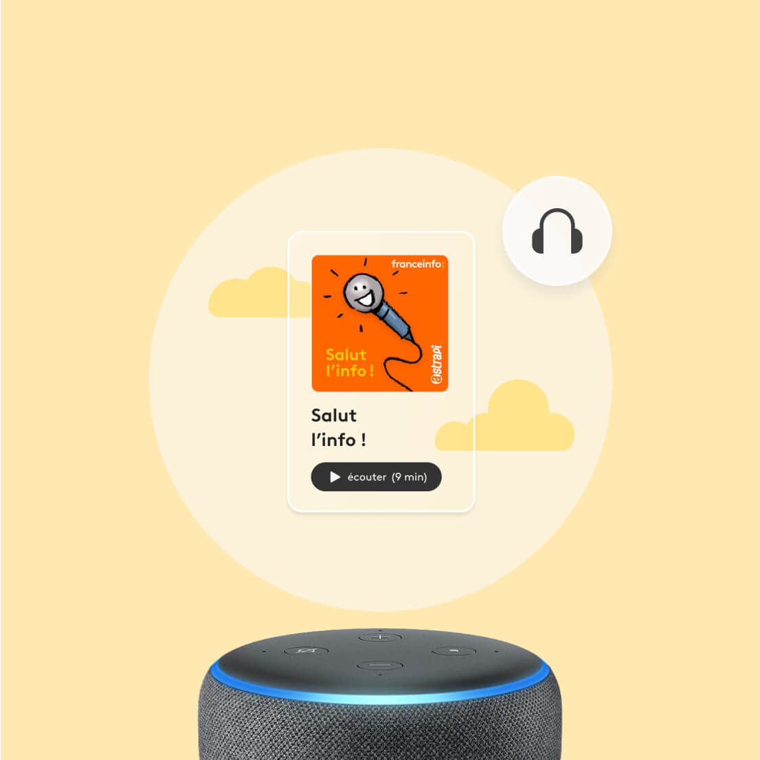 Permettez à votre enfant de découvrir le monde qui l'entoure, apprendre selon ses envies ou s'évader dans des histoires extraordinaires. Le tout, en toute autonomie au sein d’une expérience sans écran et spécialement conçue pour lui. Vous pourrez retrouver "Salut l’info !" de France Info et "Astrapi", qui décrypte toute l’actualité à la portée des petits mais aussi des plus grands, "Oli" de France Inter, le "Confin des contes" de France Bleu… ainsi que bien d’autres podcasts pour enfants de Radio France.
