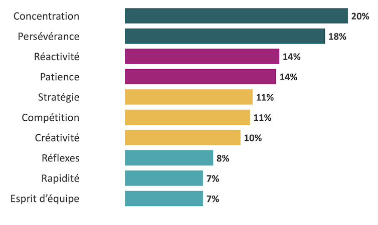 Plus précisément, elle conduit à deux résultats principaux. Premièrement, elle décrit les différences entre les sexes dans les préférences de genre de jeux vidéo. Deuxièmement, elle démontre que quel que soit le sexe ou la fréquence de jeu (joueur occasionnel, régulier, expert), l’expérience du jeu vidéo développe des compétences autoévaluées similaires.
