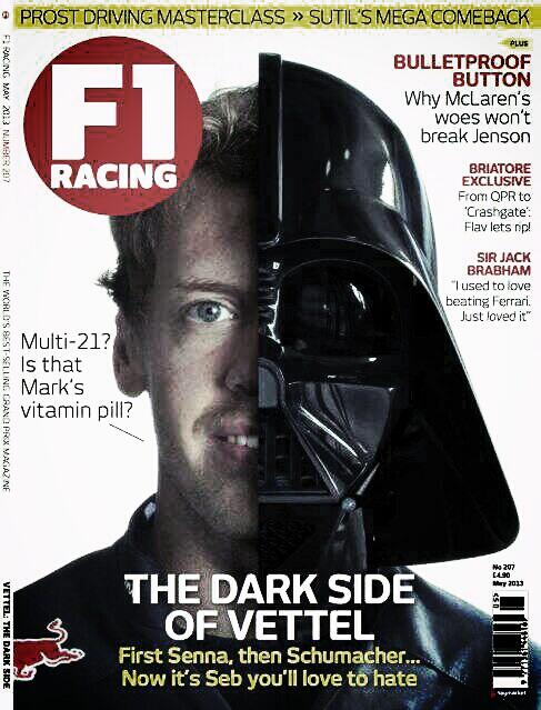Lors du Grand Prix de Malaisie 2013, Vettel dépasse son équipier, Mark Webber, alors en tête de la course, ignorant délibérément les instructions de son directeur d'écurie. Le garçon sympathique a tombé le masque. Le grand public ouvre les yeux, et découvre que, comme d'autres grands champions (Prost, Senna, Schumacher...), Vettel est prêt à (presque) tout pour gagner. Les magazines spécialisés le dépeignent en Dark Vador, comme F1 Racing, ou en "baby-faced killer", comme Autoweek. "Je n'ai tué personne", élude Vettel sur le site du magazine.